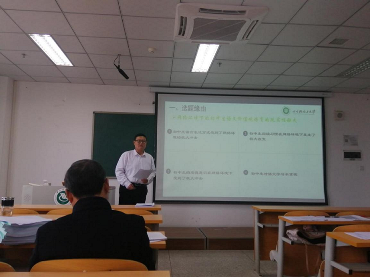 2022年1月4日上午8:30,四川轻化工大学人文学院于第四实验楼701、705教室举行了2019级学科教学(语文)研究生学位论文预答辩会。本次学位论文预答辩分2个小组,每组设1名答辩组长,4名答辩组成员。答辩组长由人文学院何清教授、王余教授担任,答辩成员由肖兴政教授、代晓冬教授、刘小文教授、万燚教授、唐瑛教授、沈穷竹副教授、王茂老师、王德刚老师组成。本次答辩会由人文学院副院长刘小文主持,学院党委书记朱德珍、研究生导师、研究生工作秘书以及全体学科教学(语文)研究生参会。