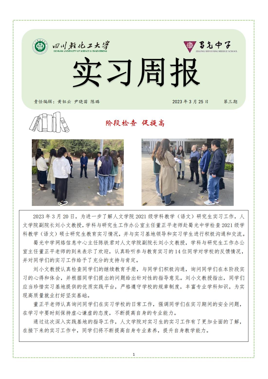 人文学院2021级学科教学(语文)研究生专业实习周报第三期