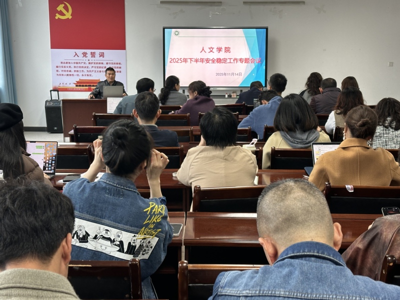 11月14日,人文学院召开全院教职工参加的安全稳定工作专题会议。会上,全体教职工集中观看了涵盖居民住宅、电动车火灾、安全生产事故等内容的警示教育片,学习了习近平总书记关于平安中国建设的重要指示精神,通报了秋季开学以来学院安全工作开展情况,对做好秋冬季节的安全稳定工作进行了全面布置并提出了明确要求,强调全体教职工要深刻认识安全稳定工作的极端重要性、落实“一岗双责”,压紧压实安全稳定工作责任、聚焦重点领域,抓常抓细安全稳定工作。