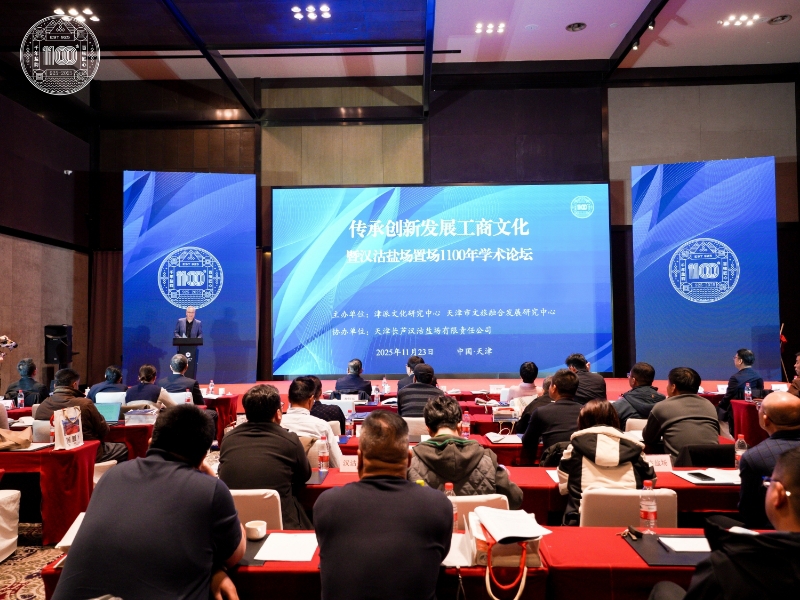 2025年11月23日,“传承创新发展工商文化暨汉沽盐场置场1100周年”学术论坛在天津召开,会议由津派文化研究中心、天津市文旅融合发展研究中心主办,天津长芦汉沽盐场有限责任公司、天津市社会科学院协办,来自南开大学、天津大学、四川轻化工大学、天津财经大学、天津社会科学院、中国海盐博物馆、天津长芦汉沽盐场有限责任公司等单位50余名专家、学者参加会议。天津社会科学院党组书记、院长钟会兵,天津渤海化工集团有限责任公司党委书记、董事长王俊明,中共天津市委宣传部副部长徐中围绕工商文化、盐文化、津派文化等致辞。