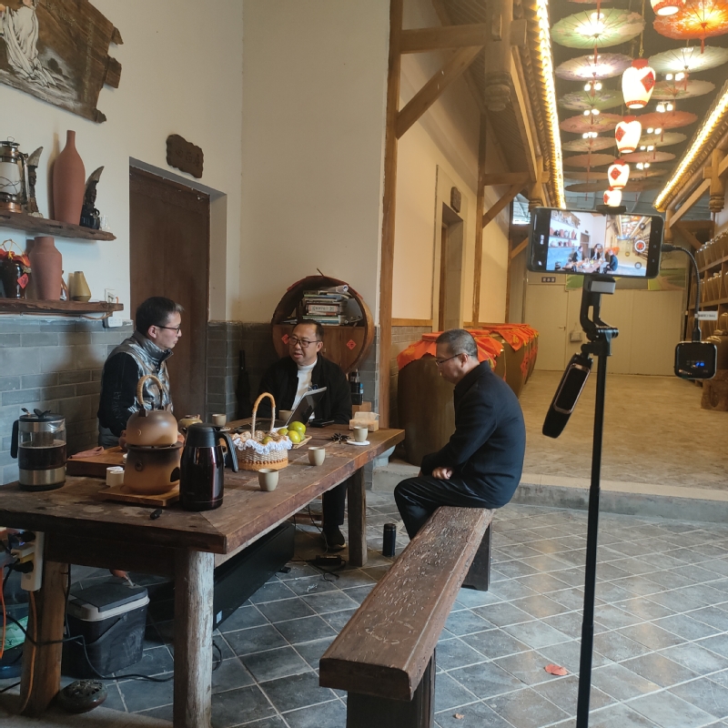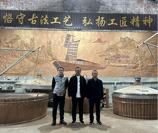 在叶世华陪同下,两位教授实地走访了酒庄环境风貌、人文展陈、酿酒车间、文创工作坊等区域,全面掌握其生产运营与文化建设实况。访谈中,叶世华详述了酒庄的文化根基与文旅实践:酒庄命名源自自贡盐文化先驱梅泽,深耕千年盐酒交融史,选用本土红缨子高粱酿酒,传承非遗“老醅酿造技术”,创新“一口三香”白酒与“盐帮窖藏”工艺,更将百余首原创诗词融入文创设计,构建起盐、酒、诗词三位一体的文化体系。