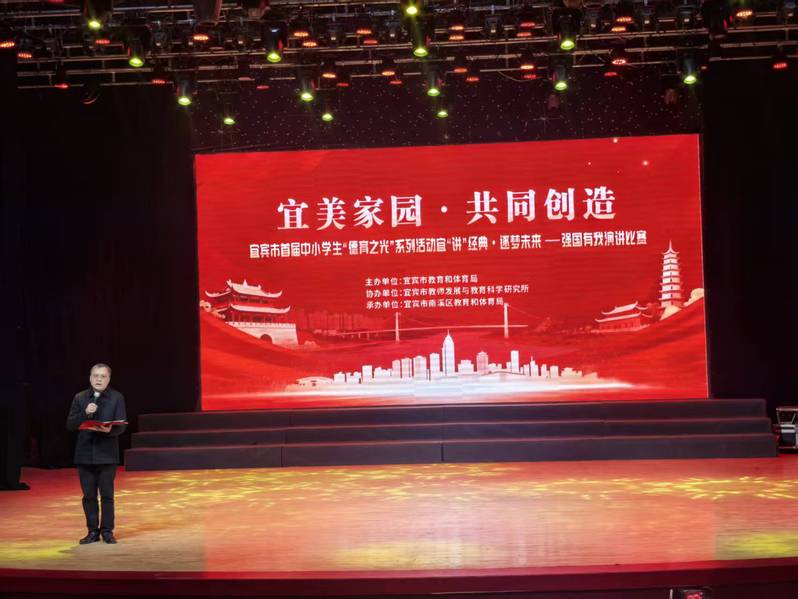 近日,作为以“宜美家园•共同创造”为主题的德育教育重要实践载体的宜宾市首届中小学生德育之光系列活动“宜‘讲’经典•逐梦未来—强国有我”演讲比赛在宜宾市南溪区举行。人文学院代晓冬教授受国家语言文字推广基地(四川轻化工大学)委派,作为基地首席专家、国家级普通话测试员,担任了本次演讲比赛的评委。