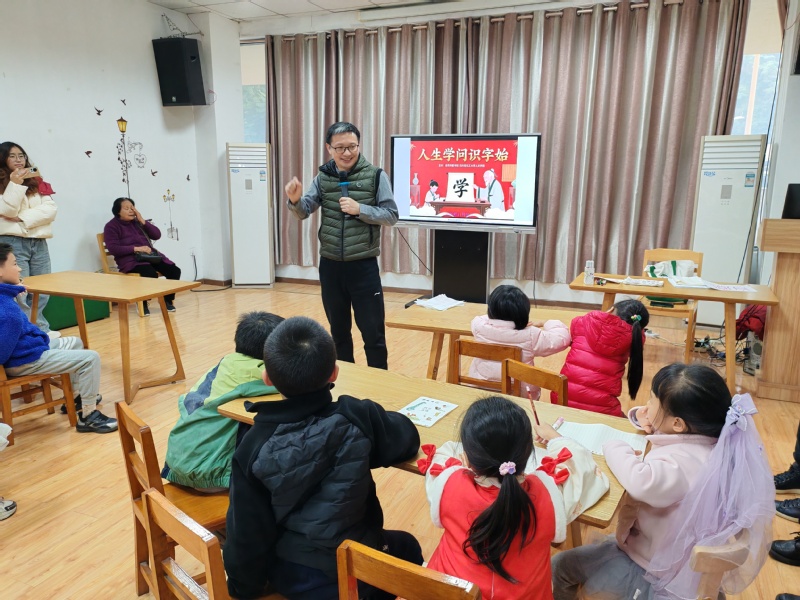 2025年11月30日上午,自贡市图书馆联合四川轻化工大学人文学院,共同举办“阅启童心 读趣同行”系列少儿阅读第四期活动。本期活动以“人生学问识字始”为主题,聚焦儿童阅读启蒙,通过趣味互动与文化探索相结合的形式,助力孩子们感受汉字魅力、夯实阅读基础。活动由人文学院王益教授主持,两名研究生与三名本科生共同参与组织执行。