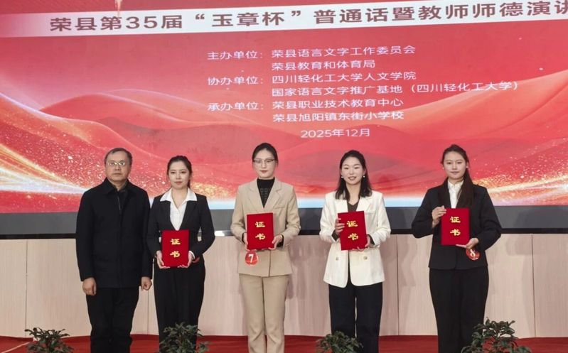 为深化校地合作,服务地方基础教育发展,12月11日,由荣县语言文字工作委员会、荣县教育和体育局主办的第35届“玉章杯”普通话比赛和师德演讲比赛成功举办。四川轻化工大学人文学院、国家语言文字推广基地(四川轻化工大学)作为协办单位,参与了本次赛事,以专业力量赋能区域语言文化建设。