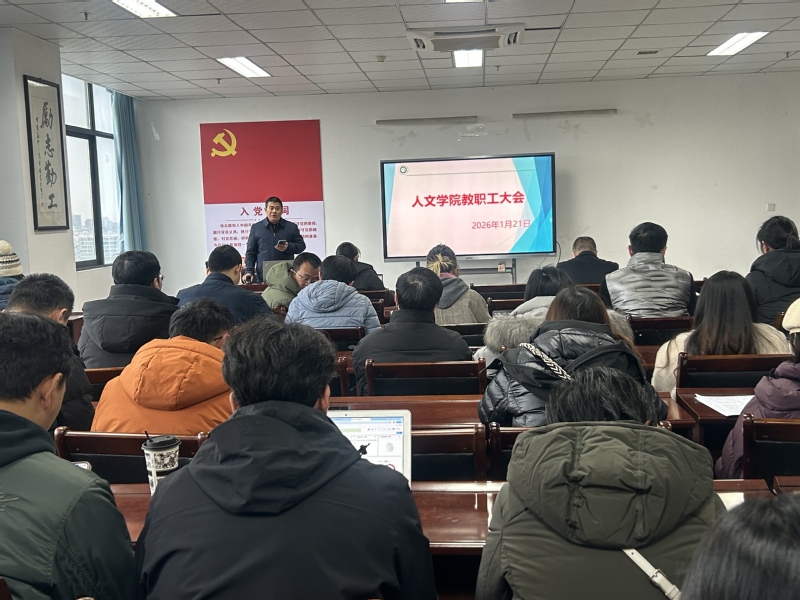 1月21日下午,人文学院在汇东校区第四实验楼802会议室召开教职工大会,会议由学院党委书记杨长牛主持。